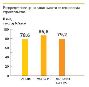 В зависимости от технологии домостроения наиболее низкая цена предложения наблюдается в панельных домах – 78,6 тыс. руб. за кв. м.