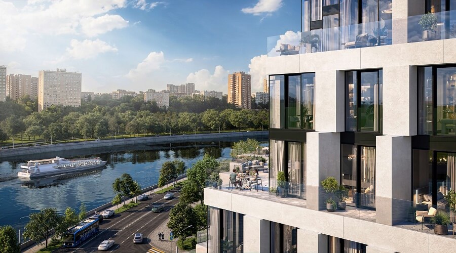 95% квартир с видом на реку. 21 метр от квартиры до воды. Квартиры от 17,4 млн руб