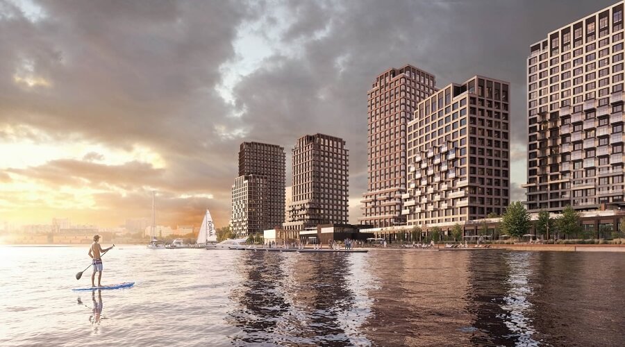 95% квартир с видом на реку. 21 метр от квартиры до воды. Квартиры от 17,4 млн руб