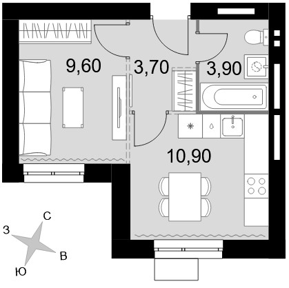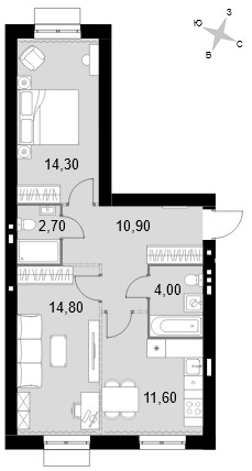 - 1-комнатные от 32,3 кв.м по цене от 4,9 млн рублей;