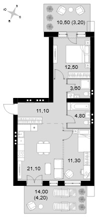 - многокомнатные от 106,2 кв.м по цене от 15,4 млн рублей.