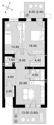 - 2-комантные от 39,9 кв.м по цене от 6,1 млн рублей;