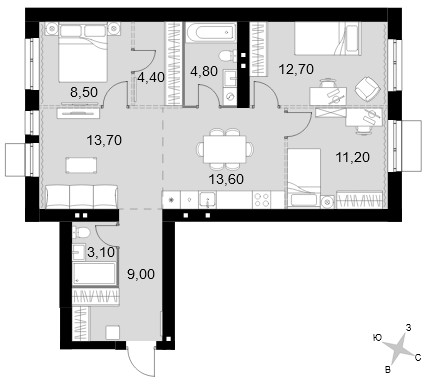 - 3-комнатные от 63,3 кв.м по цене от 7,7 млн рублей;