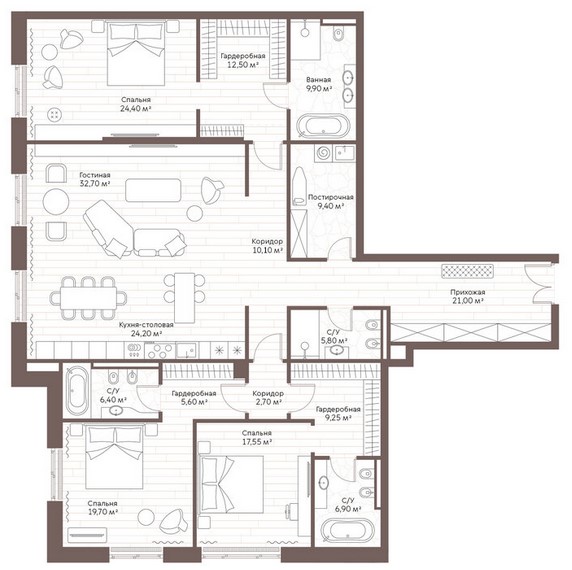 - 3-комнатные от 217,7 км.м., стоимость от 511,6 млн рублей.