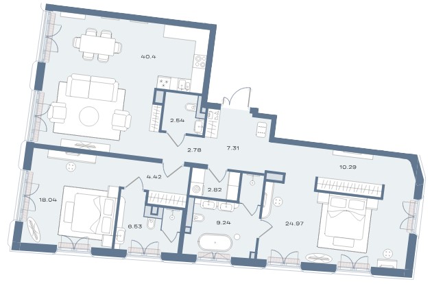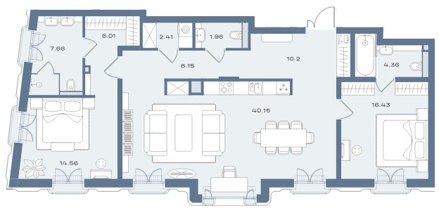- 2-комнатные от 117,2 кв.м., стоимостью от 224,6 млн рублей;