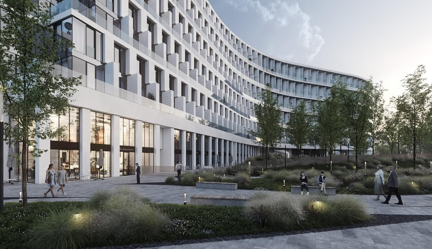 Современное и функциональное 16-ти этажное здание с активной геометрией фасадов и запоминающимся обликом расположено в районе с низкоэтажной застройкой, что обеспечивает великолепные виды (уже с 5-6 этажа) на исторический центр и протекающую рядом реку Москва.