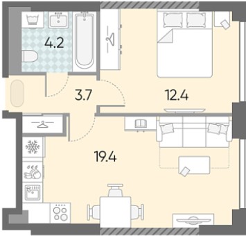 - 1-комнатные квартиры от 34 кв. м. по цене от 19,3 млн рублей;