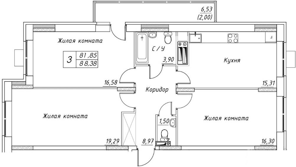 - 3-комнатные лоты от 88 кв. м. стоимостью от 10,4 млн рублей.