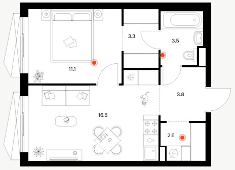 - 1-комнатные квартиры от 32,8 кв.м, стоимостью от 16,6 млн рублей;