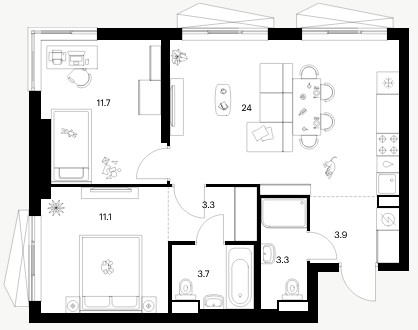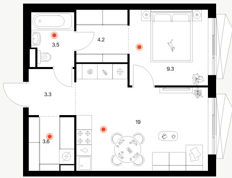 Группа сдает помещения в статусе квартир. Представлены варианты от студий до 3-комнатных с чистовой отделкой. Среди интересных планировочных решений выделим кухни-ниши и рабочие места в студиях, мастер-спальни в "однушках", просторные столовые в "двушках", два санузла в "трёшках". В последних по желанию можно также организовать постирочную комнату или рабочий кабинет.