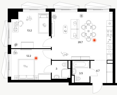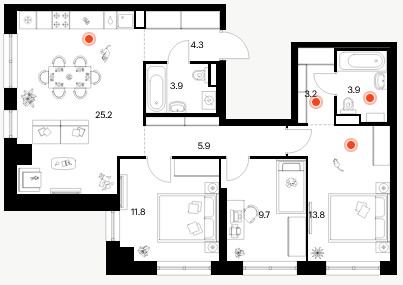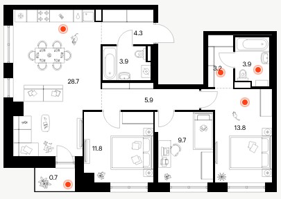 - 3-комнатные квартиры от 66,9 кв.м, стоимостью от 28,2 млн рублей.