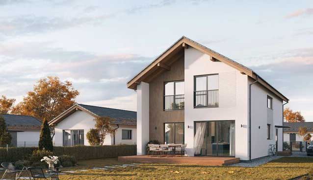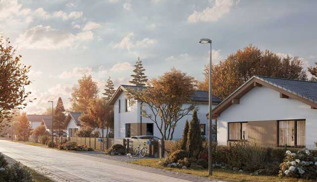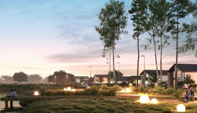 В поселке площадью 285 га появится более 2,2 тыс. домов высотой до двух этажей. Все здания строят с использованием современных экологичных материалов, в едином скандинавском стиле. Внешний облик домов отличается сочетанием светлых оттенков с древесными элементами декора, скатными крышами. Двухэтажные дома имеют панорамные окна на первом этаже. Строительство идет по технологии prefab с использованием современных материалов, обеспечивающих высокий уровень тепло- и энергоэффективности зданий.
