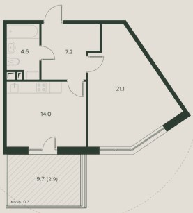 - 1-комнатные от 34,9 кв.м., стоимостью от 9,4 млн рублей;