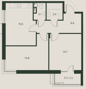 - 3-комнатные от 50,5 кв.м., стоимостью от 15,6 млн рублей;