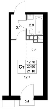 - студии от 21 кв. м, стоимостью от 4,2 млн рублей;