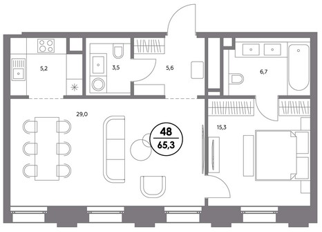 - 1-комнатные квартиры от 65,3 кв.м, стоимостью от 285,2 млн рублей;