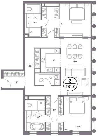 - 2-комнатные квартиры от 131,7 кв.м, стоимостью от 587,9 млн рублей;