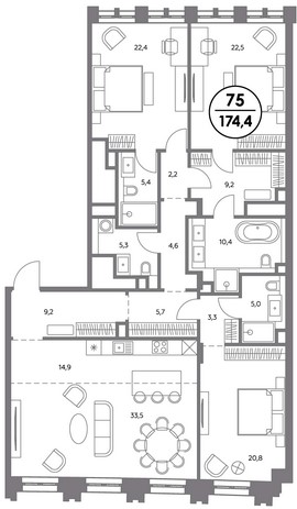 | 3-комнатная | 174,4 - 174,4 м2 | от 4 212 000 руб. | 734,7 - 734,7 млн руб. | В продаже | ||||||||||||||||||