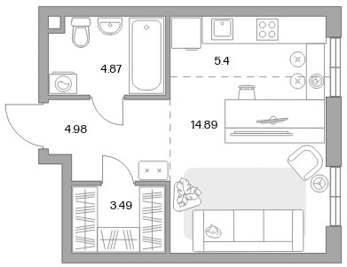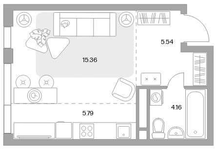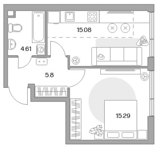 - 1-комнатные от 34,4 кв.м., стоимостью от 15,2 млн рублей;