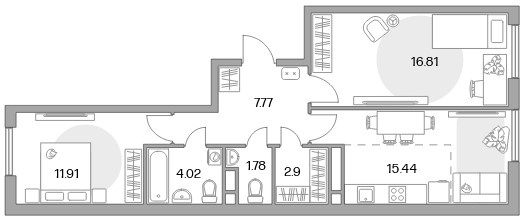 - 2-комнатные от 34,4 кв.м., стоимостью от 15,2 млн рублей;