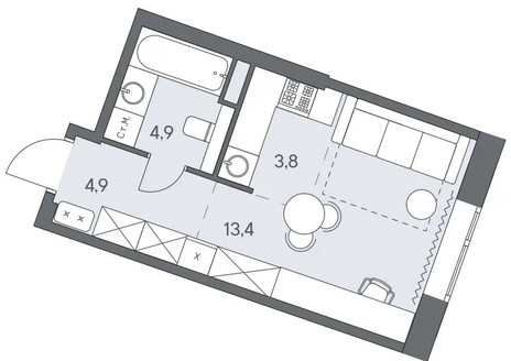 - студии от 24,7 кв. м по цене от 11,8 млн рублей;