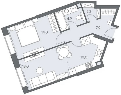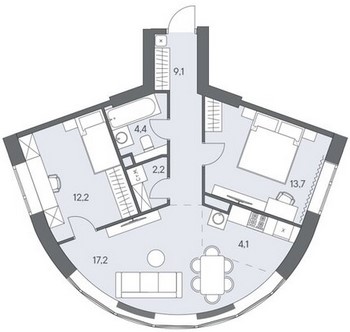 - 2-комантные квартиры от 46,2 кв. м по цене от 18,8 млн рублей;