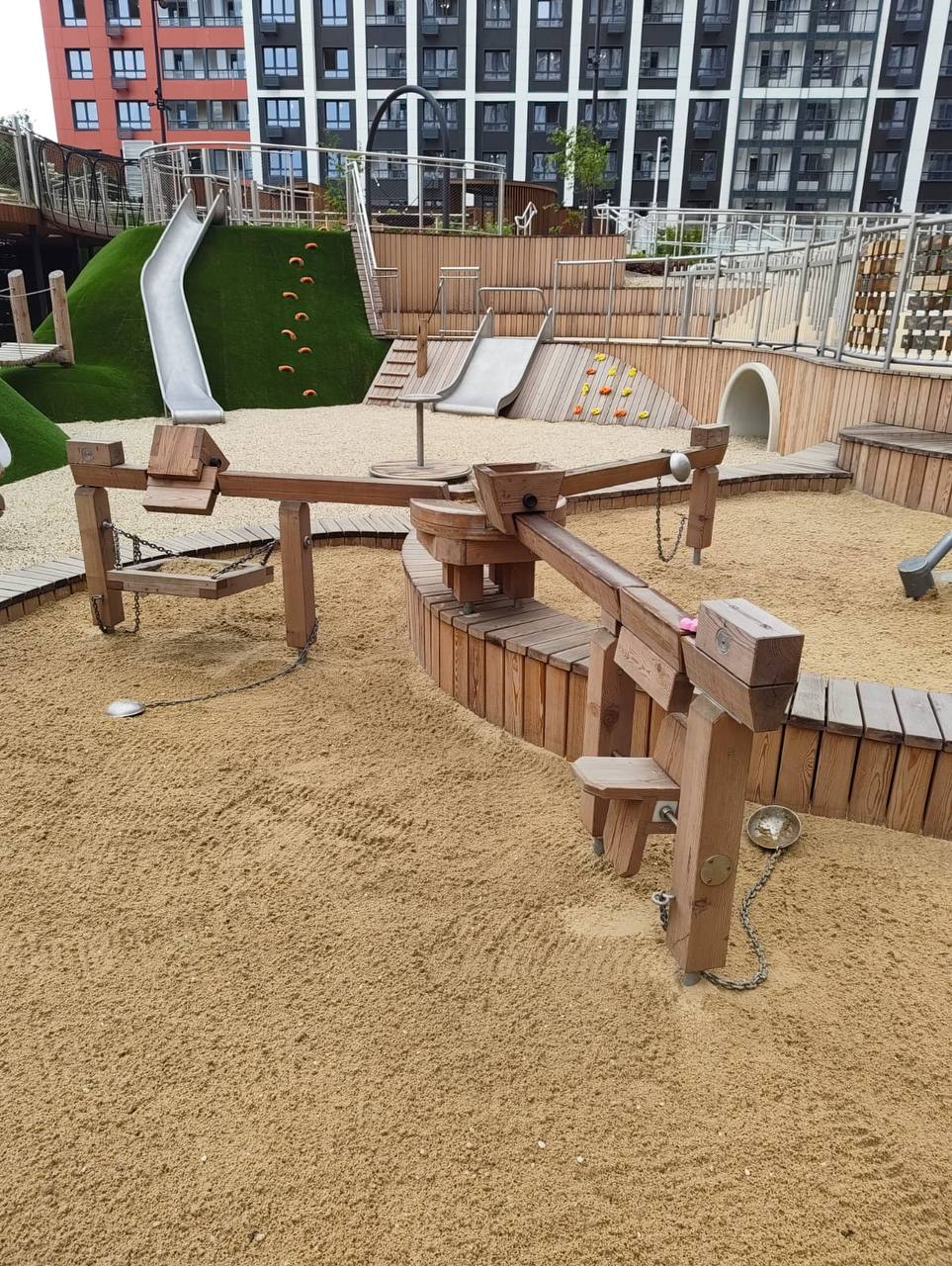 Территория комплекса, занимающего 1,7 Га, комплексно озеленена в соответствии с проектом ландшафтного дизайна. В пространство двора органично вписаны места для отдыха и прогулок, зоны для занятий спортом на свежем воздухе, а так же обширная уникальная детская игровая комната площадью 250 кв. м по стандарту Kid's Lab от Sminex. Kid's Lab — стандарт детских пространств от Sminex для гармоничного развития маленьких жителей. Проекты Kid's Lab соответствуют последним мировым открытиям в области детского развития.
