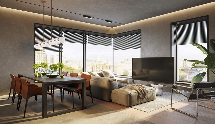 Разнообразные форматы квартир: мастер-спальни в квартирах, начиная с однокомнатных, балконы с распашными дверями, приватные террасы и увеличенные угловые окна в кухнях-гостиных, дровяные камины и окна в ванных в пентхаусах высотой до 5 метров.