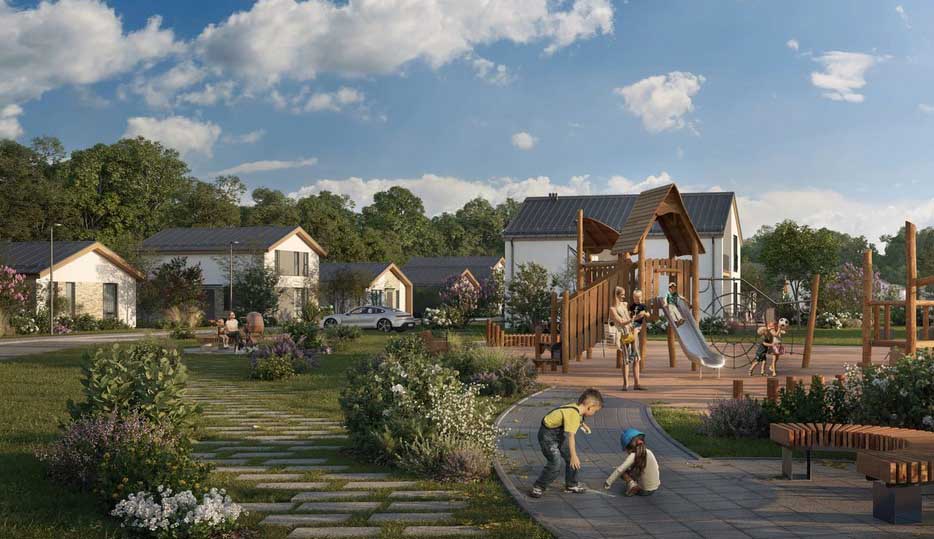 - Большой выбор домов: доступны как двухуровневые коттеджи с террасами, так и компактные дома;