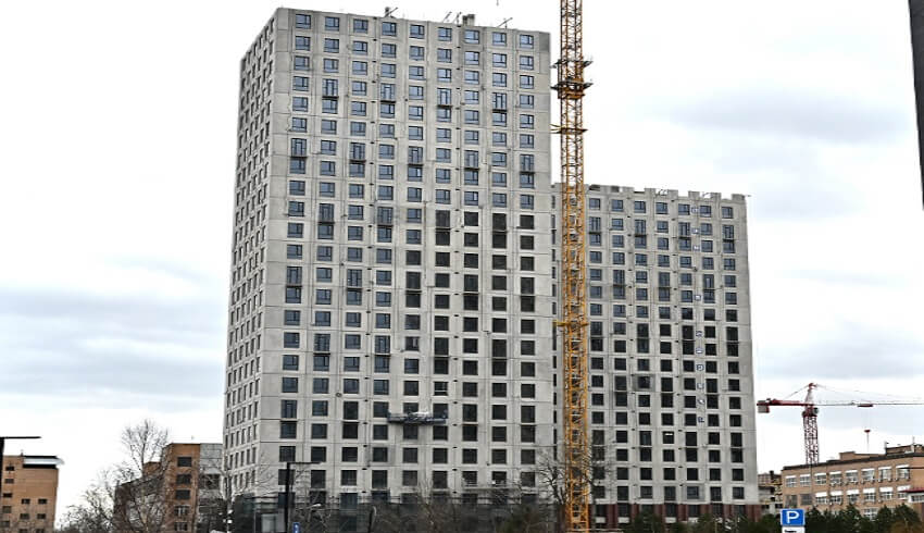 Этажность от 20 до 25. Бизнес. Монолитный. Без отделки. Подземная парковка.