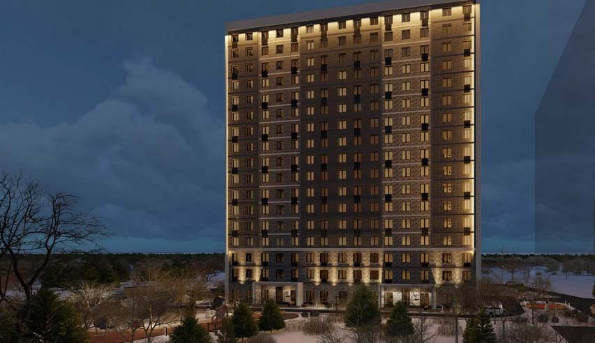 Фасад зданий будет выполнен в современном стиле, в коричневых и терракотовых тонах. Для лоджий выбрали витражное остекление. Фасады домов будут утеплены и облицованы кирпичом.