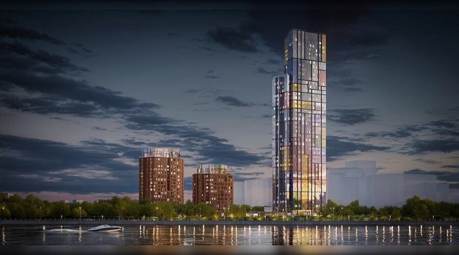 95% квартир с видом на реку. 21 метр от квартиры до воды. Квартиры от 17,4 млн руб