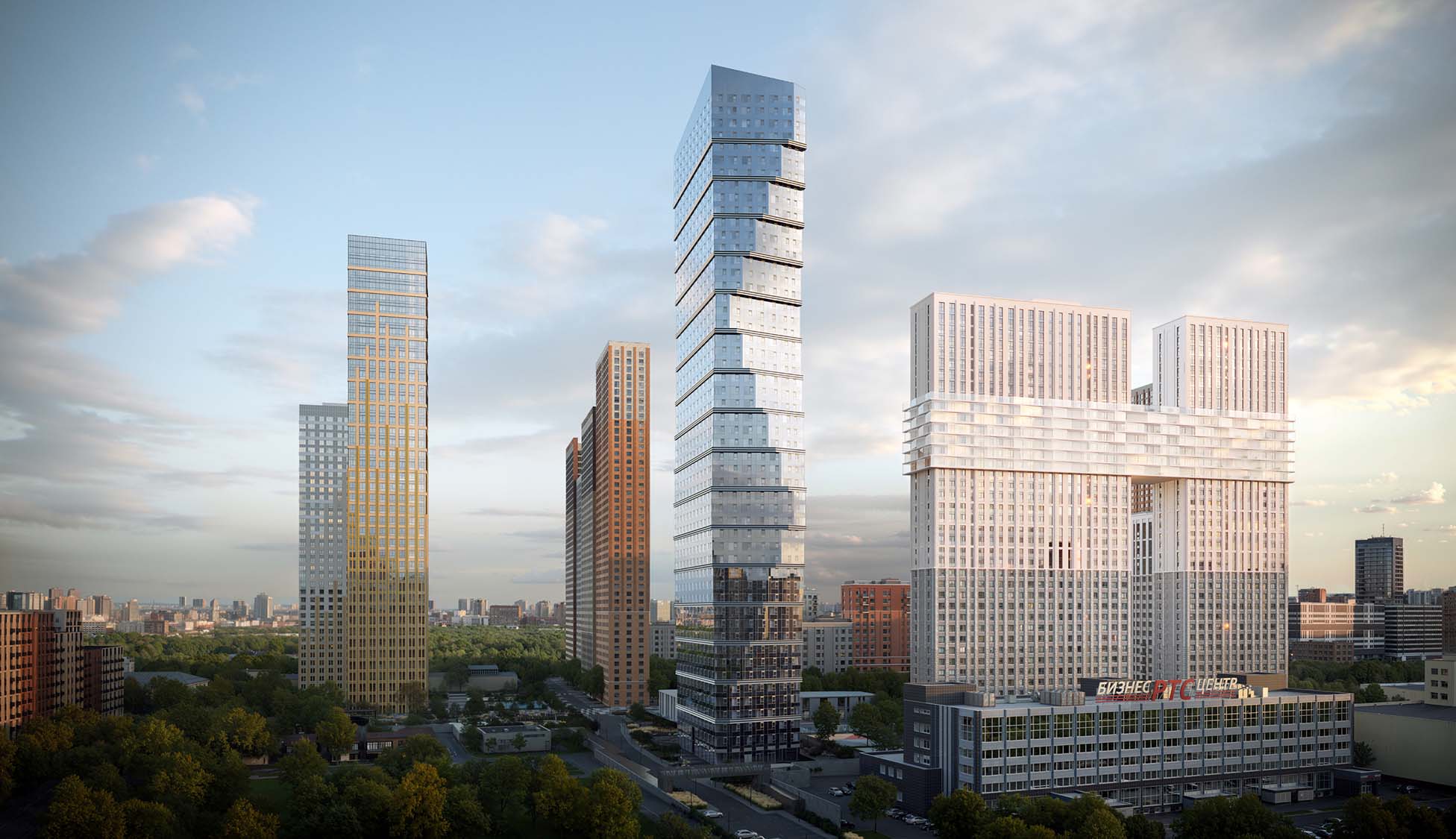 Новостройка состоит из двух жилых корпусов высотой 23 и 31 этажа, объединенных общим стилобатом. Кровля последнего станет эксплуатируемой. Строительство идет по монолитной технологии.